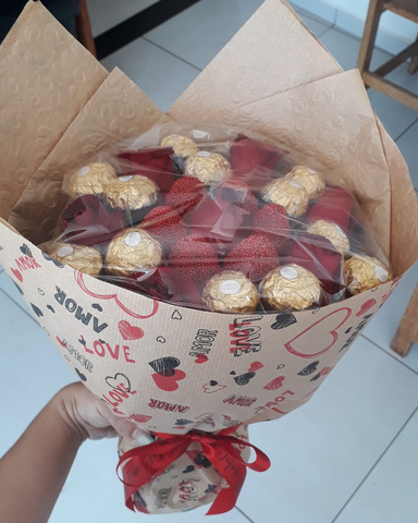 BUQUÊ FERRERO E MORANGOS BANHADOS NO CHOCOLATE