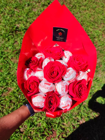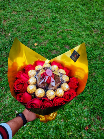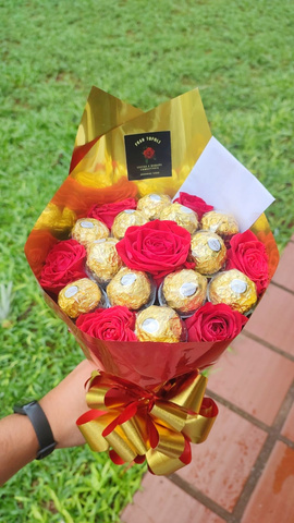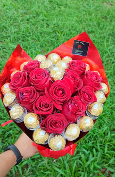 BUQUÊ FERRERO ROCHER E ROSAS VERMELHAS