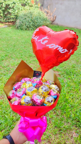 BUQUÊ DE BOMBONS COM BALÃO PERSONALIZADO